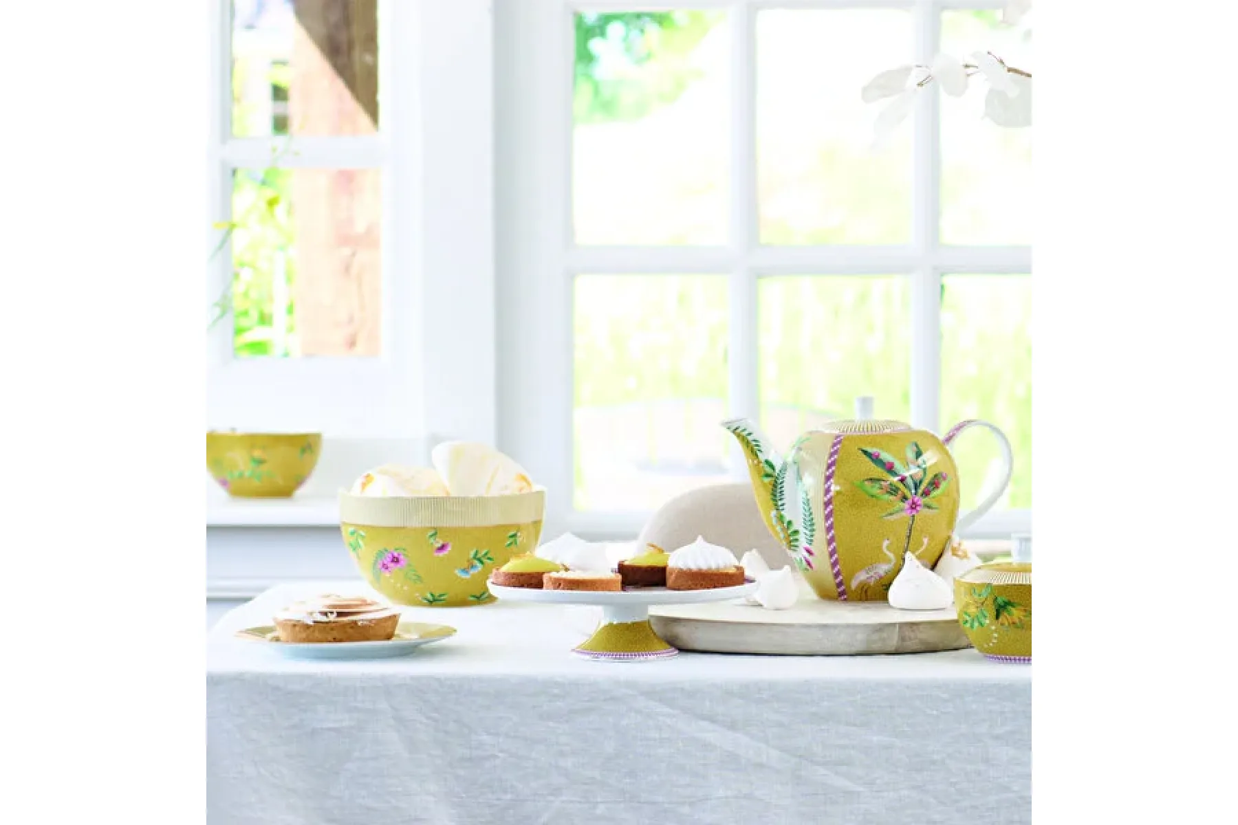 Doğadan ilham alan desenleri ve zarif yapısı ile hayatınıza farklılık katan Pip Studio La Majorelle porselen sarı ayaklı servis ile sofralarınızda harika sunumlara imza atacaksınız. La Mjorelle koleksiyonun en özel parçalarından biri olan kek standı lezzetli keklere ihtişamlı bir görünüm katıyor. Lüks tasarımlı sofralarla hem kendinizi hem misafirlerinizi şımartın. Yapılan tatlıları ve kekleri daha özel bir lezzete çeviren Pip Studio La Majorelle satı kek servisi sofraların en özel parçası oluyor. Pip Studio kek standı gövde kısmının nadide kıvrımları ile kolay taşınabilir ve çizilmeyen yapısı ile uzun yıllar kullanılabilirliği gözler önüne seriyor.